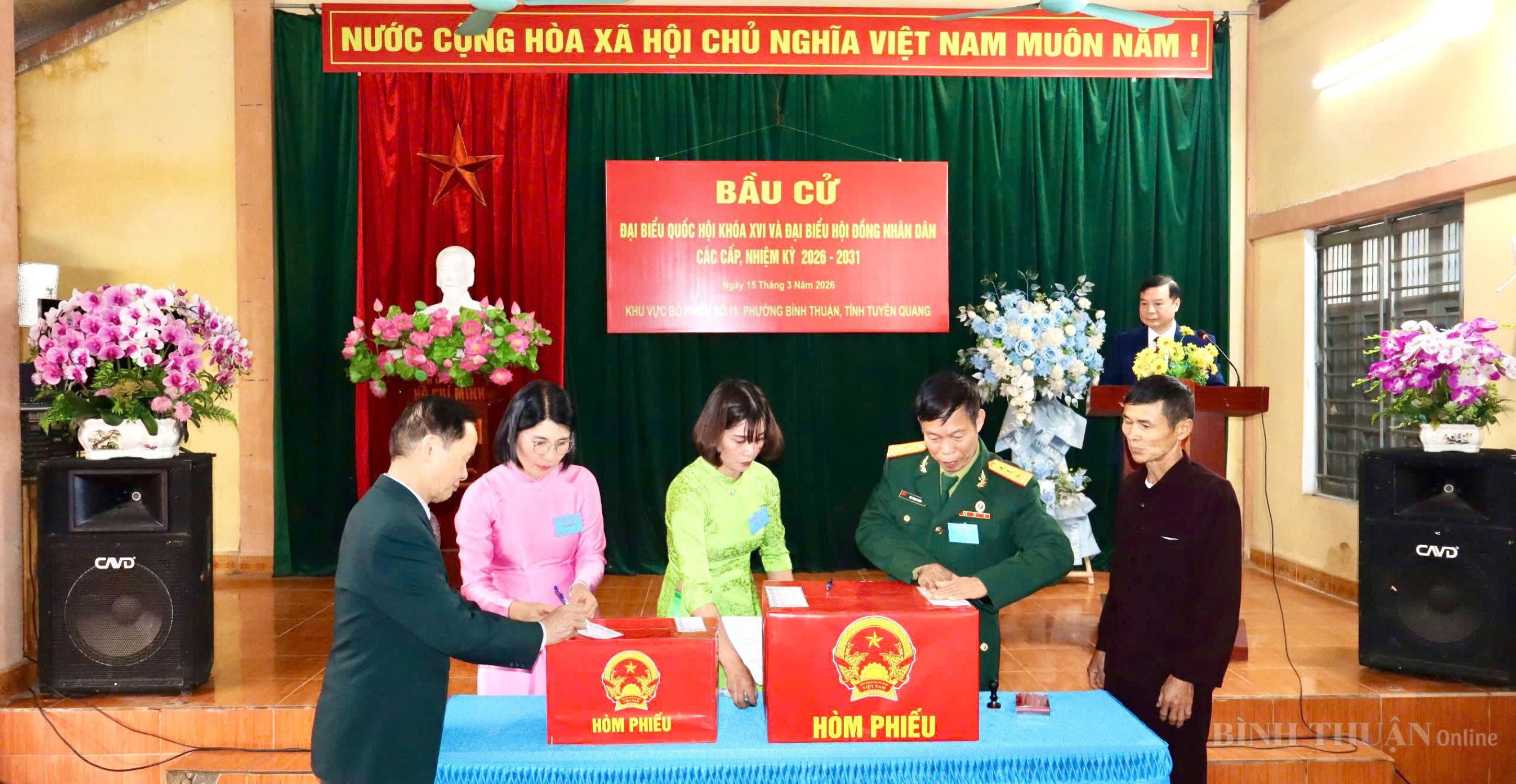 Chiều 15-3, phường Bình Thuận đã hoàn thành 100% cử tri tham gia bỏ phiếu bầu đại biểu Quốc hội khóa XVI và đại biểu HĐND các cấp nhiệm kỳ 2026 – 2031 tại 12 Tổ bầu cử (12 khu vực bỏ phiếu) trên địa bàn.