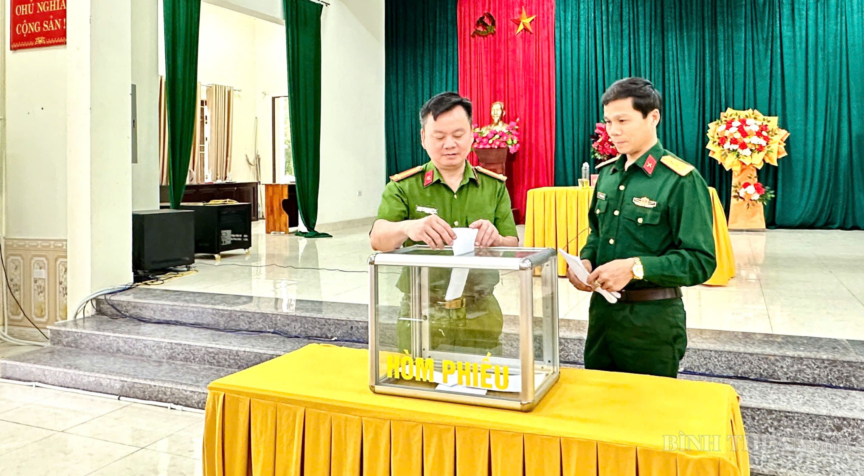 Đồng chí Bí thư Đảng ủy, Chủ tịch HĐND phường; đồng chí Phó Bí thư Thường trực Đảng ủy phường; đồng chí Phó Bí thư Đảng ủy, Chủ tịch UBND phường bỏ phiếu bầu giới thiệu nhân sự