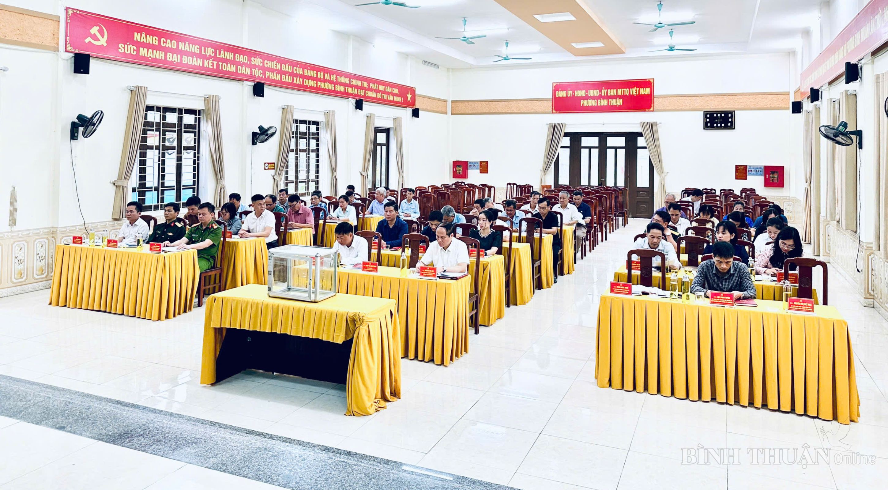 Sáng ngày 25/3, tại Nhà văn hóa phường, Đảng ủy phường Bình Thuận tổ chức Hội nghị cán bộ chủ chốt giới thiệu nhân sự ứng cử các chức danh lãnh đạo HĐND và UBND phường khóa II, nhiệm kỳ 2026 – 2031. Hội nghị do đồng chí Phạm Thị Kiều Trang – Bí thư Đảng ủy, Chủ tịch HĐND phường chủ trì. Dự hội nghị có các đồng chí Thường trực Đảng ủy, lãnh đạo HĐND, UBND phường; Ủy viên Ban Chấp hành Đảng bộ phường; lãnh đạo các cơ quan, đơn vị; Chủ tịch Ủy ban MTTQ và trưởng các tổ chức chính trị - xã hội; Bí thư các chi bộ, đảng bộ trực thuộc.