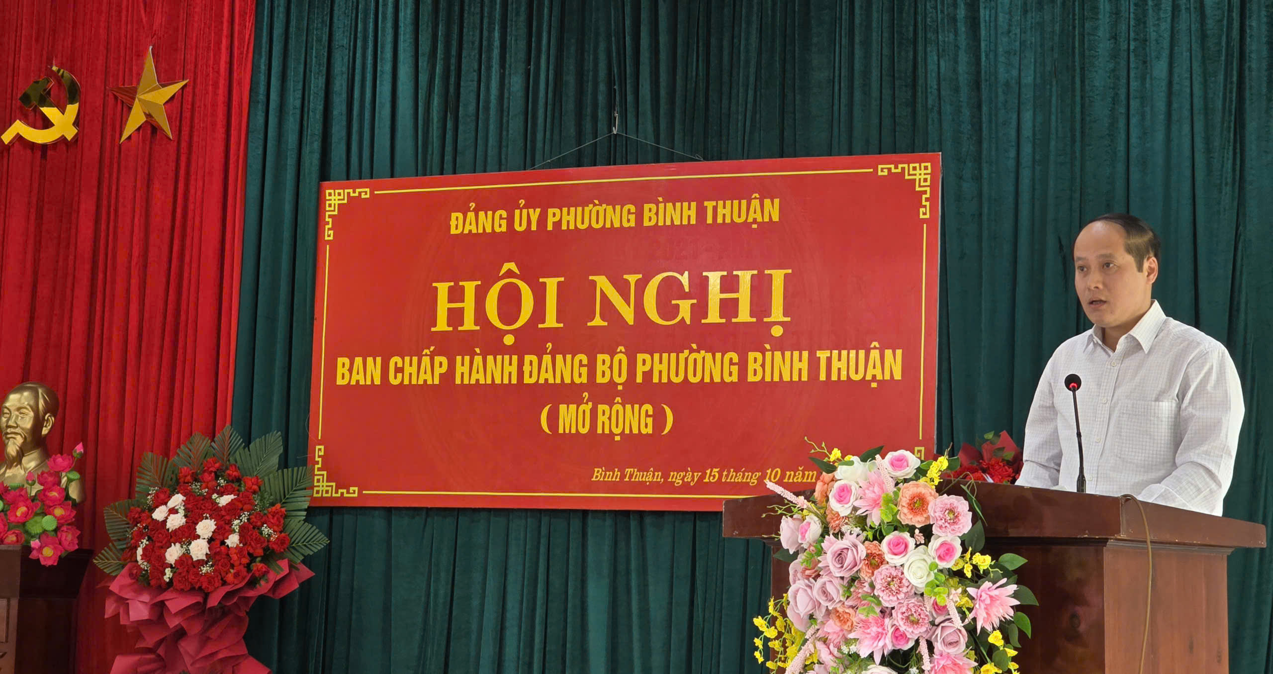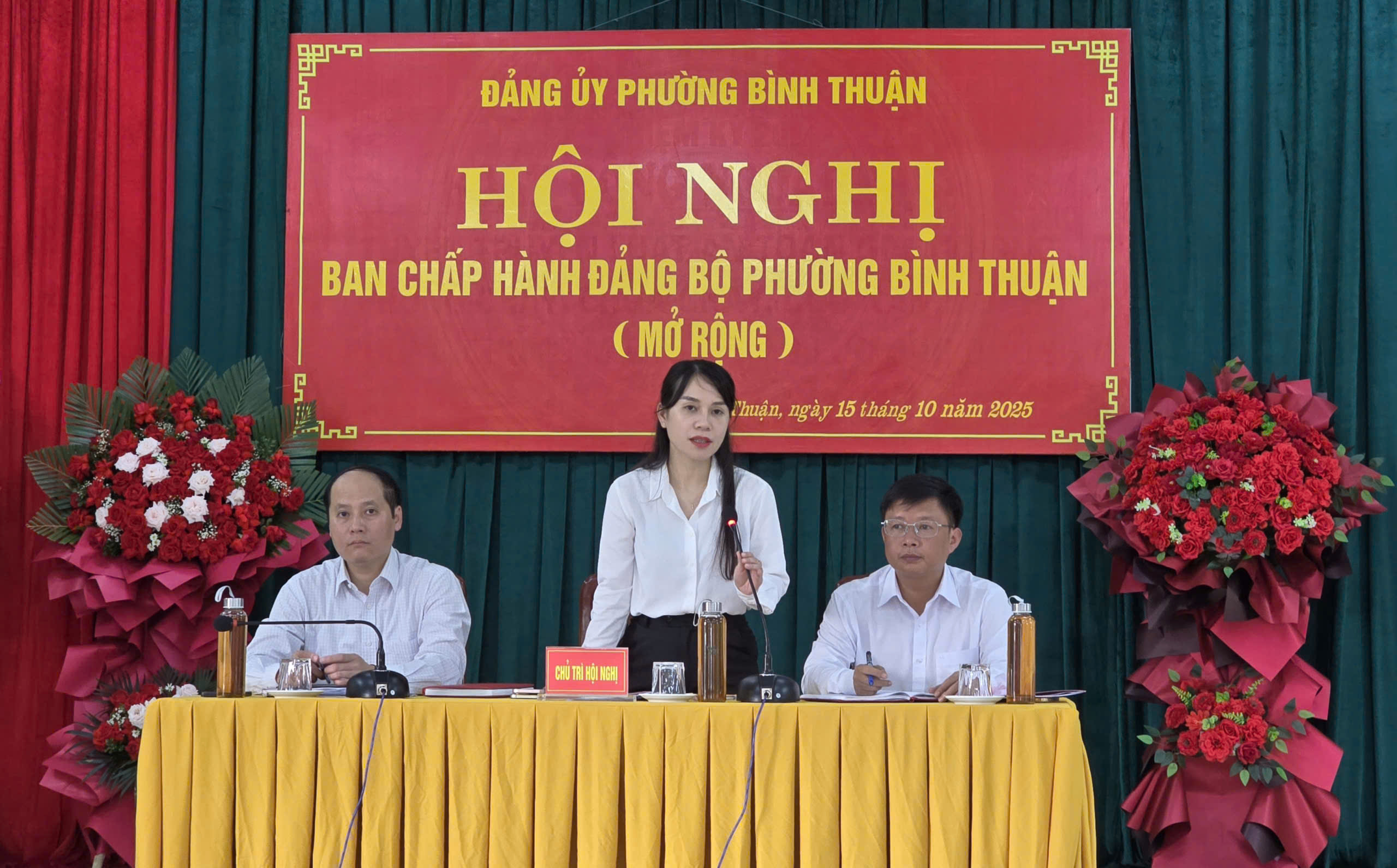 Chiều ngày 15/10/2025, tại Nhà văn hoá phường Bình Thuận, Đảng uỷ phường Bình Thuận tổ chức Hội nghị Ban Chấp hành Đảng bộ phường lần thứ 2 nhằm đánh giá kết quả thực hiện nhiệm vụ quý III và triển khai phương hướng, nhiệm vụ quý IV năm 2025.
