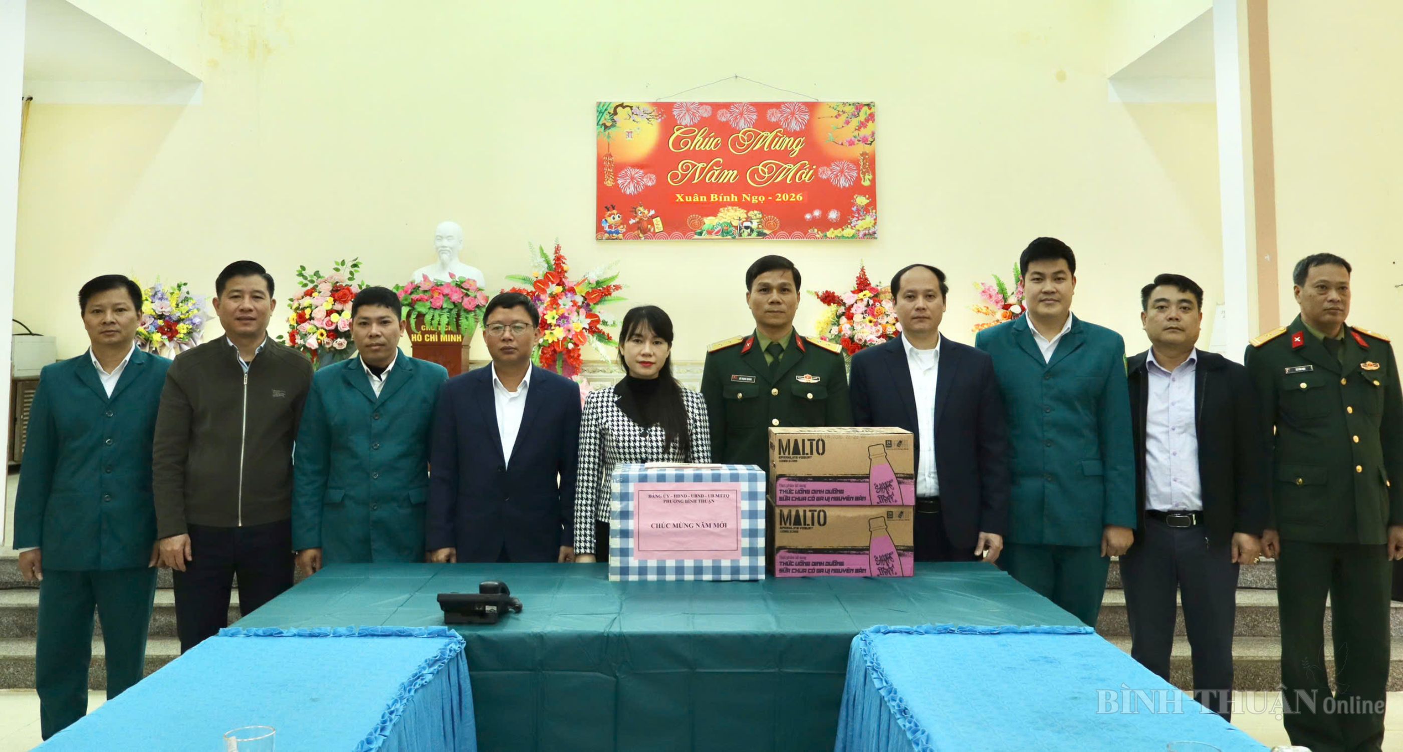 Nhân dịp Tết Bính Ngọ năm 2026, sáng ngày 13/02/2026, đồng chí Phạm Thị Kiều Trang, Bí thư Đảng ủy, Chủ tịch Hội đồng nhân dân phường, đồng chí Nguyễn Thế Anh, Phó Bí thư Thường trực Đảng ủy phường, đồng chí Nguyễn Hồng Quân, Phó Bí thư Đảng ủy, Chủ tịch Ủy ban nhân dân phường Bình Thuận đến thăm, chúc tết các cơ quan, đơn vị làm nhiệm vụ trực Tết trên địa bàn phường. Tham gia đoàn có đồng chí Nguyễn Đức Việt, Uỷ viên BCH Đảng bộ phường, Chánh Văn phòng Đảng ủy; đồng chí Nguyễn Văn Đức, Phó Chủ tịch Ủy ban MTTQ, Chủ tịch Hội Cựu chiến binh phường.