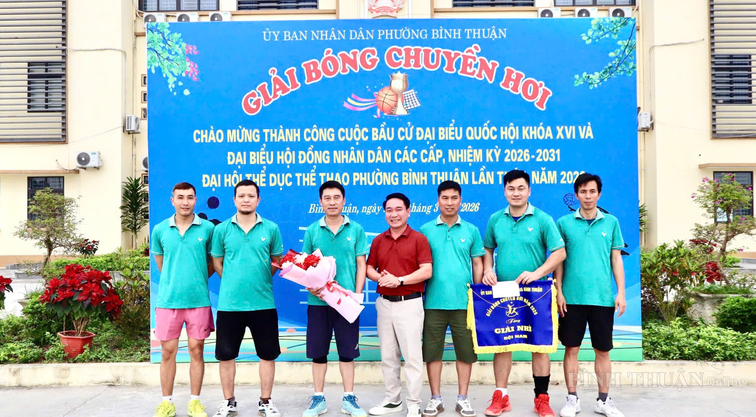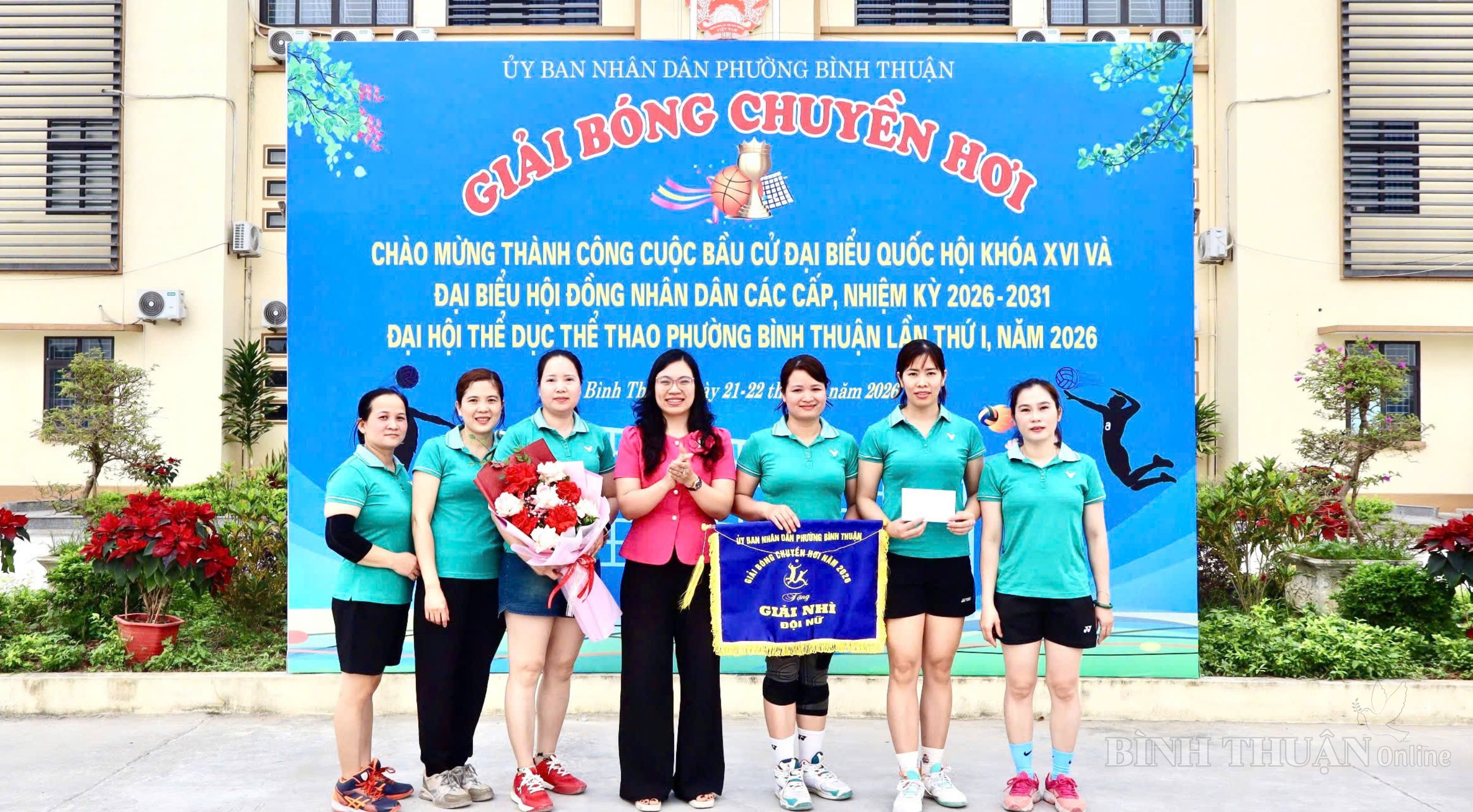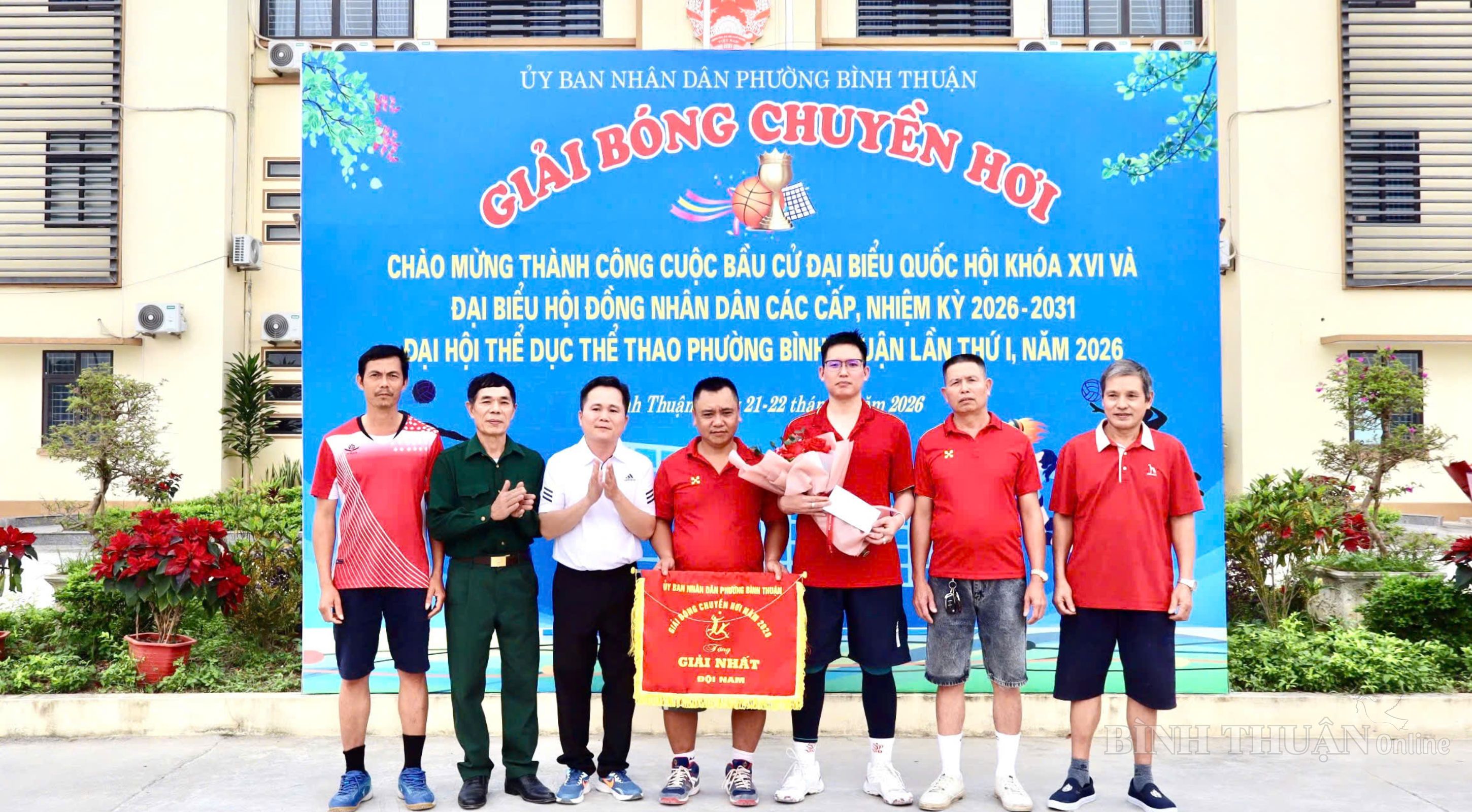 Trong không khí thi đua sôi nổi chào mừng thành công cuộc bầu cử đại biểu Quốc hội khóa XVI và đại biểu HĐND các cấp nhiệm kỳ 2026 – 2031, gắn với Đại hội Thể dục Thể thao phường Bình Thuận lần thứ I năm 2026, trong hai ngày 21 và 22/3/2026, tại Sân Nhà văn hóa phường (Tổ dân phố Hòa Mục), phường Bình Thuận đã tổ chức thành công Giải Bóng chuyền hơi năm 2026.