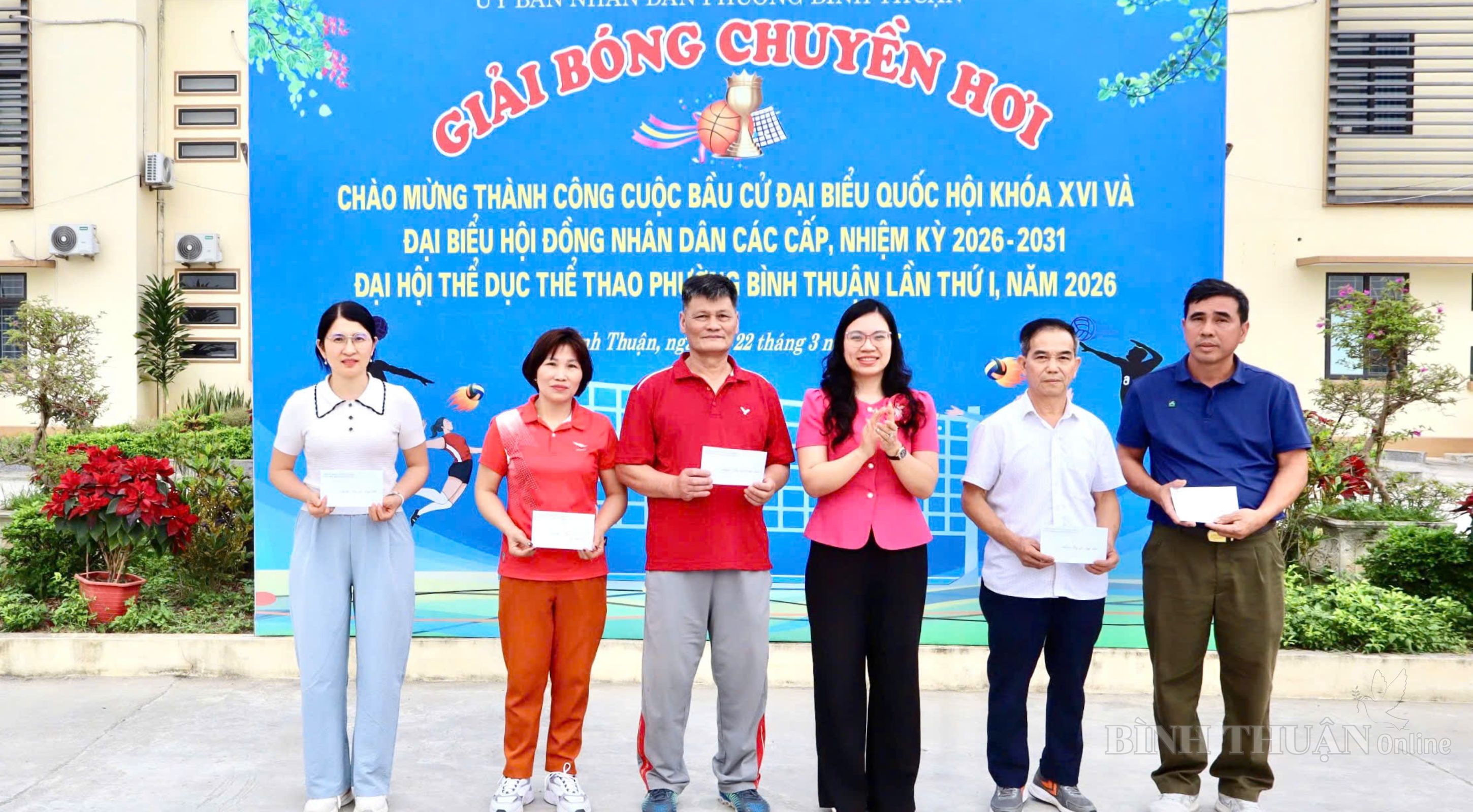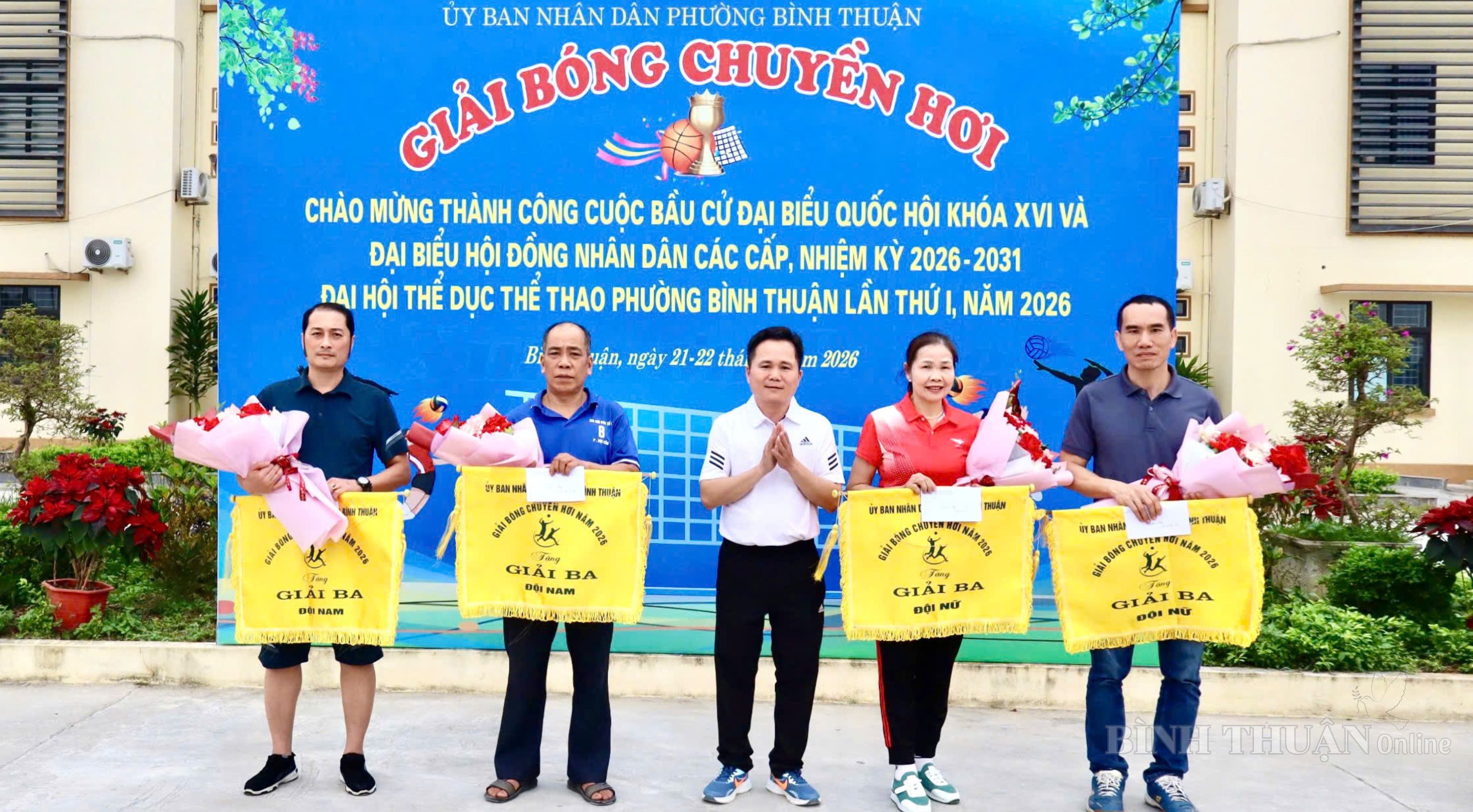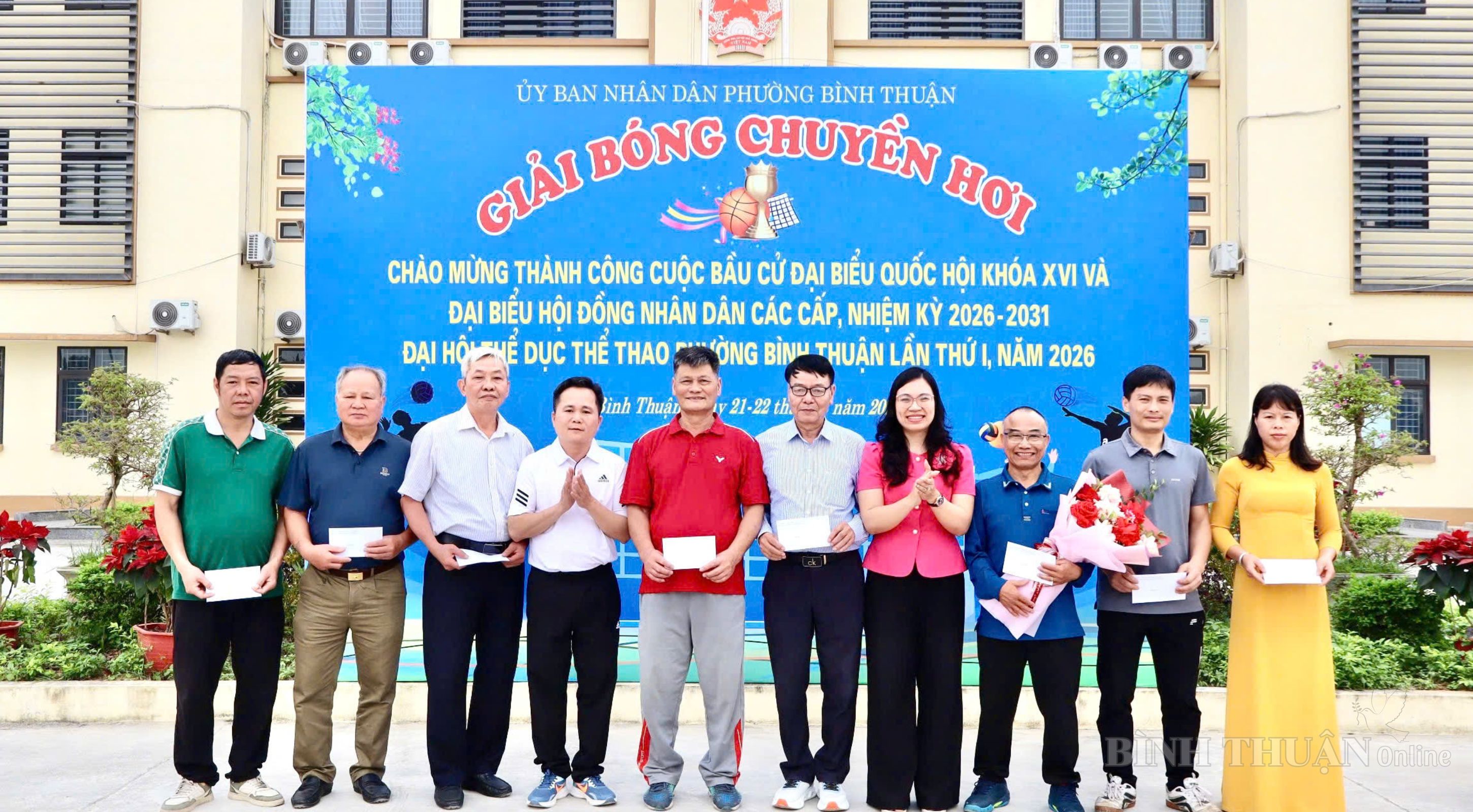 Trong không khí thi đua sôi nổi chào mừng thành công cuộc bầu cử đại biểu Quốc hội khóa XVI và đại biểu HĐND các cấp nhiệm kỳ 2026 – 2031, gắn với Đại hội Thể dục Thể thao phường Bình Thuận lần thứ I năm 2026, trong hai ngày 21 và 22/3/2026, tại Sân Nhà văn hóa phường (Tổ dân phố Hòa Mục), phường Bình Thuận đã tổ chức thành công Giải Bóng chuyền hơi năm 2026.