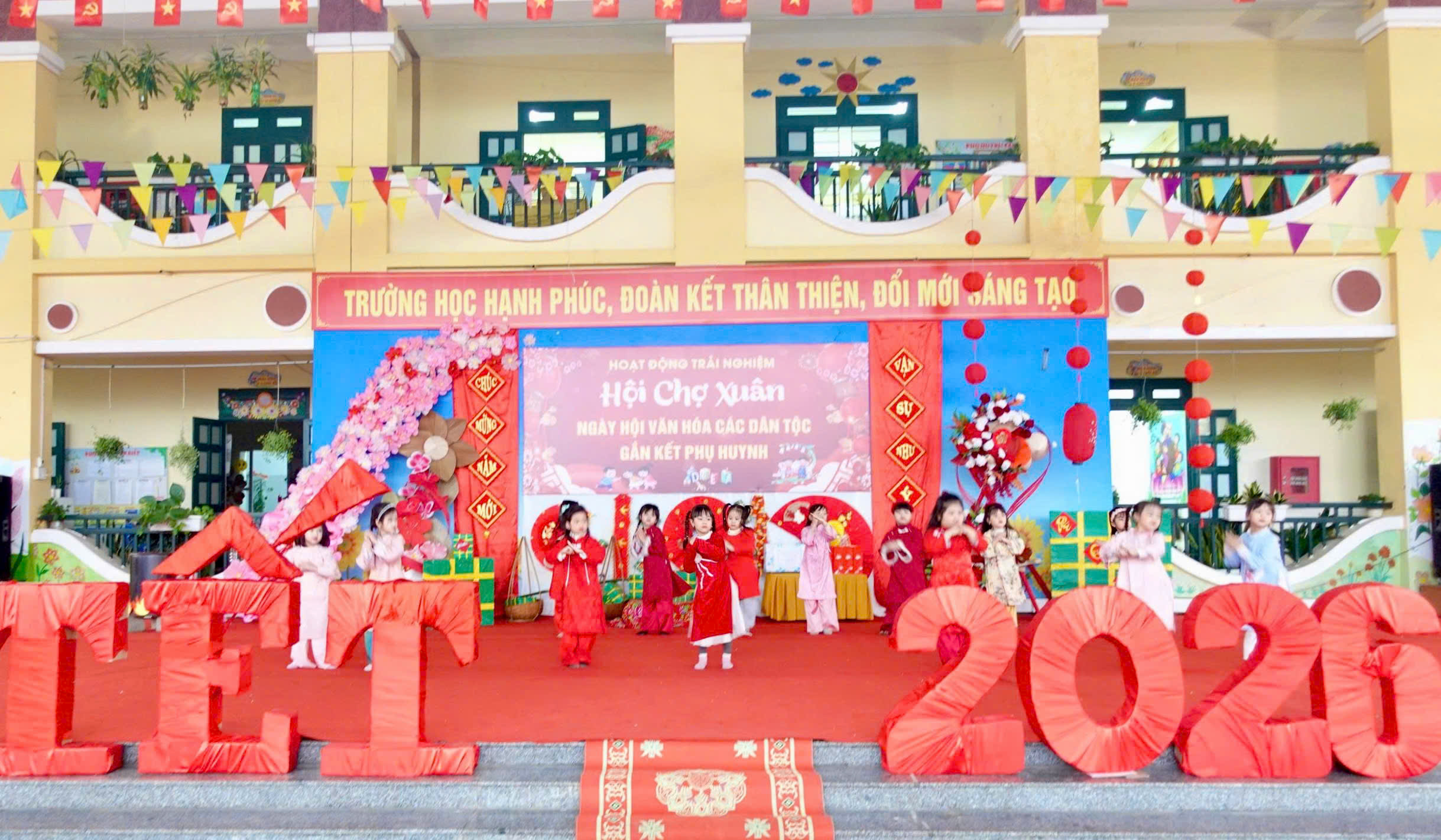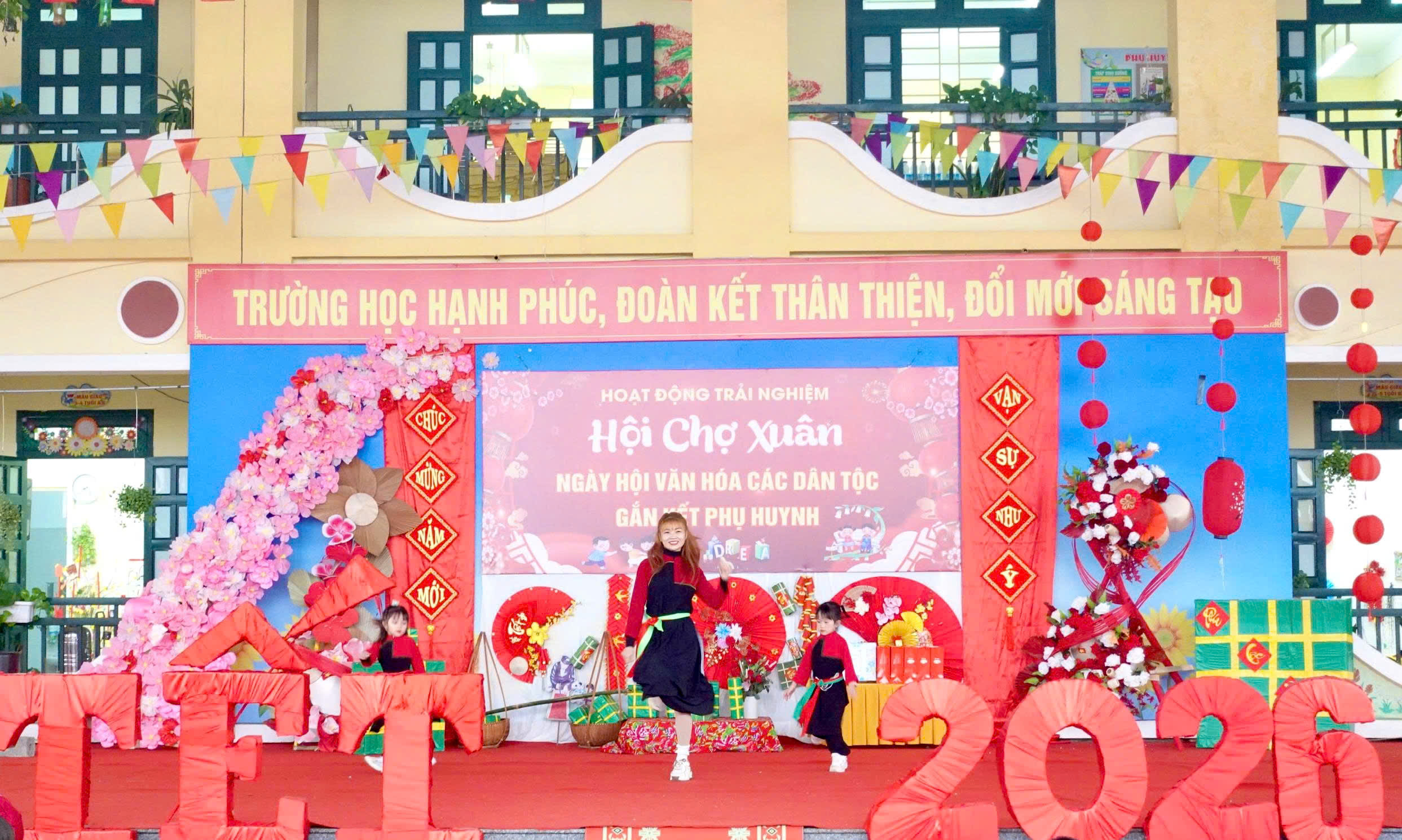 Chương trình được mở đầu bằng những tiết mục văn nghệ rộn ràng, đặc sắc do chính các cô giáo, phụ huynh và các em học sinh biểu diễn. Những giai điệu tươi vui, trong trẻo đã góp phần tạo nên bầu không khí phấn khởi, tràn ngập sắc xuân và tiếng cười hồn nhiên của trẻ thơ.