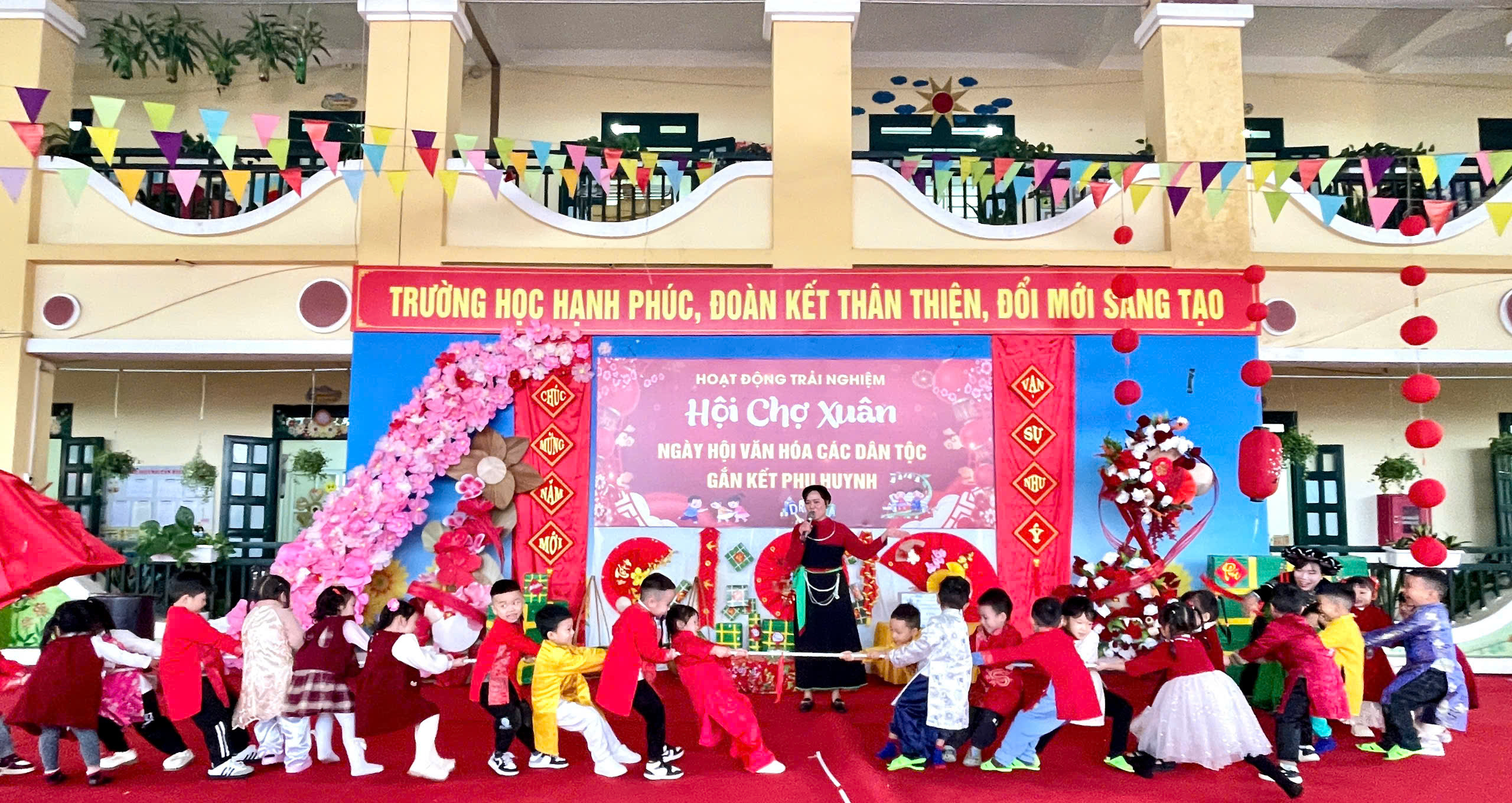 “Hội chợ xuân – Ngày hội văn hóa các dân tộc” không chỉ là hoạt động trải nghiệm thiết thực đối với trẻ mầm non mà còn là dịp để thắt chặt mối quan hệ phối hợp giữa gia đình và nhà trường, góp phần giáo dục các em về giá trị văn hóa truyền thống, tinh thần yêu thương, sẻ chia và đoàn kết ngay từ những năm đầu đời.