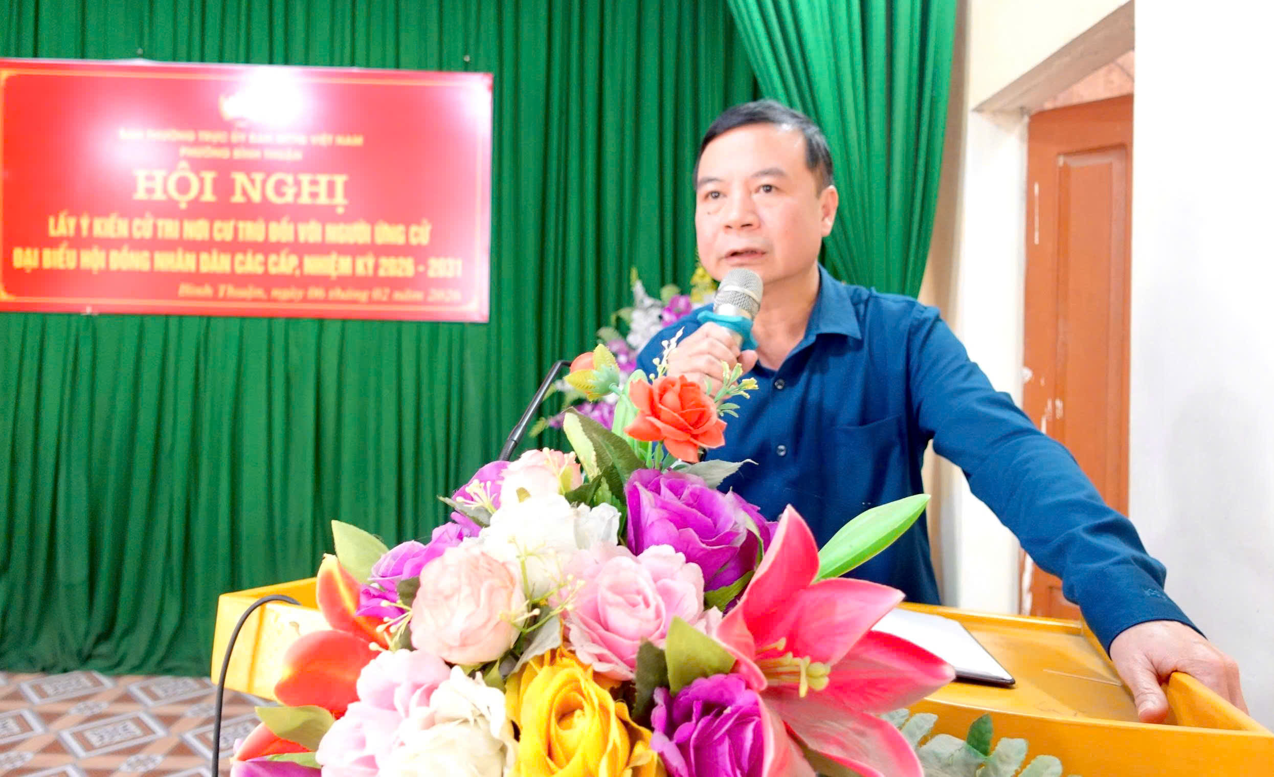 Dự hội nghị có đồng chí Đoàn Khắc Mười, Ủy viên Ban Thường vụ Đảng ủy, Trưởng Ban Xây dựng Đảng, Trưởng ban Văn hóa – Xã hội Hội đồng nhân dân phường; đồng chí Hoàng Thị Thanh Xuân, Ủy viên Ban Chấp hành Đảng bộ, Phó Chủ tịch Hội đồng nhân dân phường Bình Thuận, tham dự hội nghị với tư cách là người ứng cử đại biểu Hội đồng nhân dân phường Bình Thuận, nhiệm kỳ 2026 – 2031.