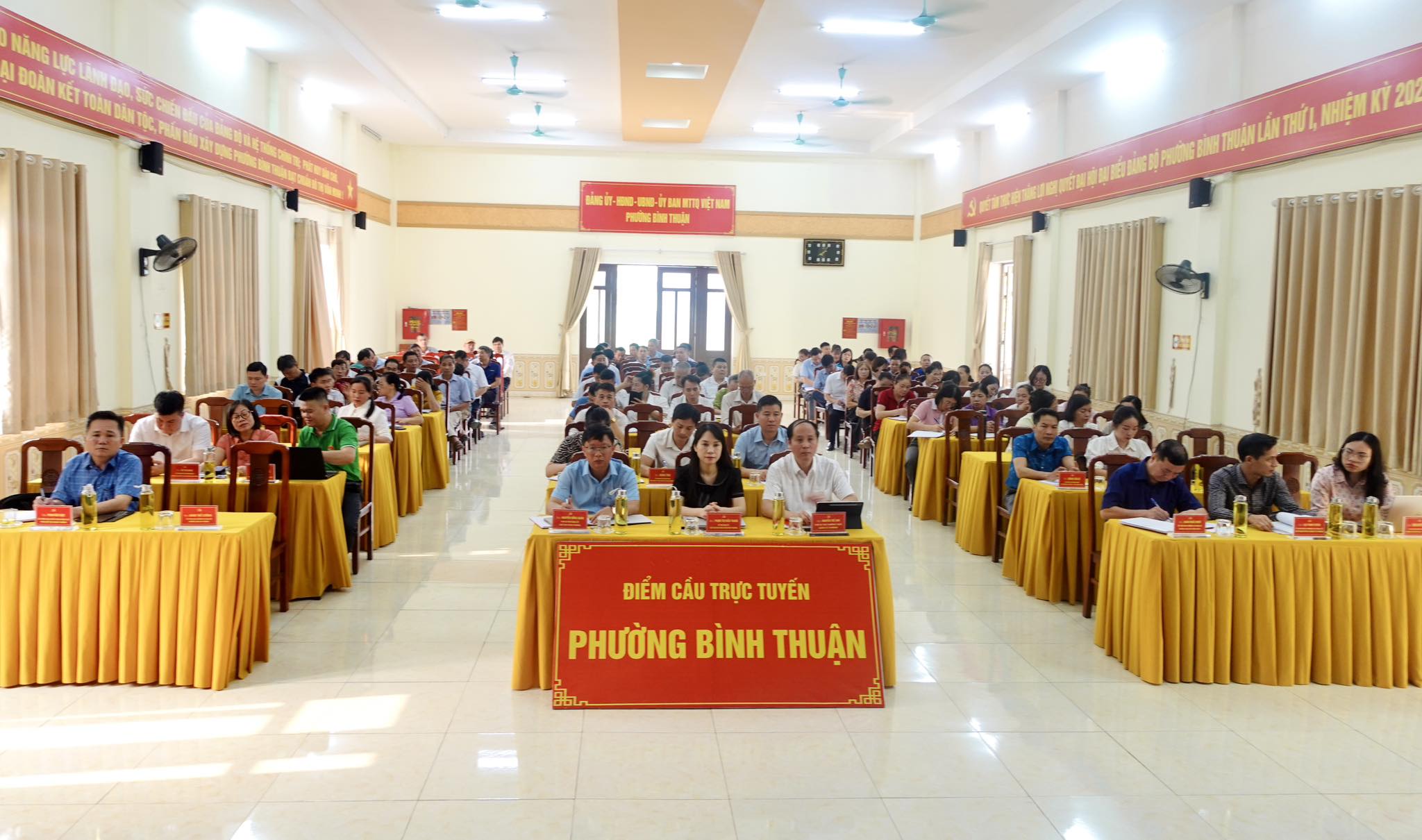Tại điểm cầu phường Bình Thuận, đồng chí Phạm Thị Kiều Trang, Bí thư Đảng ủy, Chủ tịch HĐND phường dự và chủ trì hội nghị.