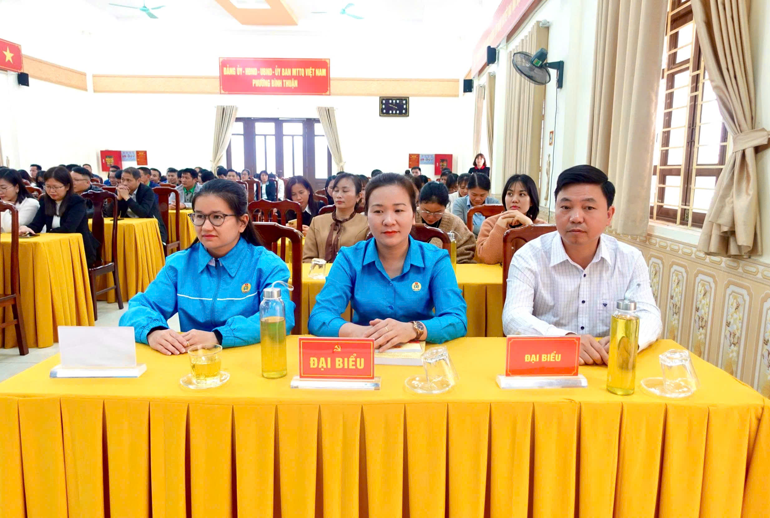 Tham dự hội nghị có đồng chí Hà Văn Vỹ, Phó Chủ tịch Liên đoàn Lao động tỉnh Tuyên Quang; đồng chí Bùi Thị Dung, Phó Chủ tịch Ủy ban MTTQ Việt Nam phường, Chủ tịch Công đoàn phường Bình Thuận; cùng các đồng chí Ủy viên Ban Chấp hành Công đoàn phường Bình Thuận (khóa I) và cán bộ công đoàn cơ sở.