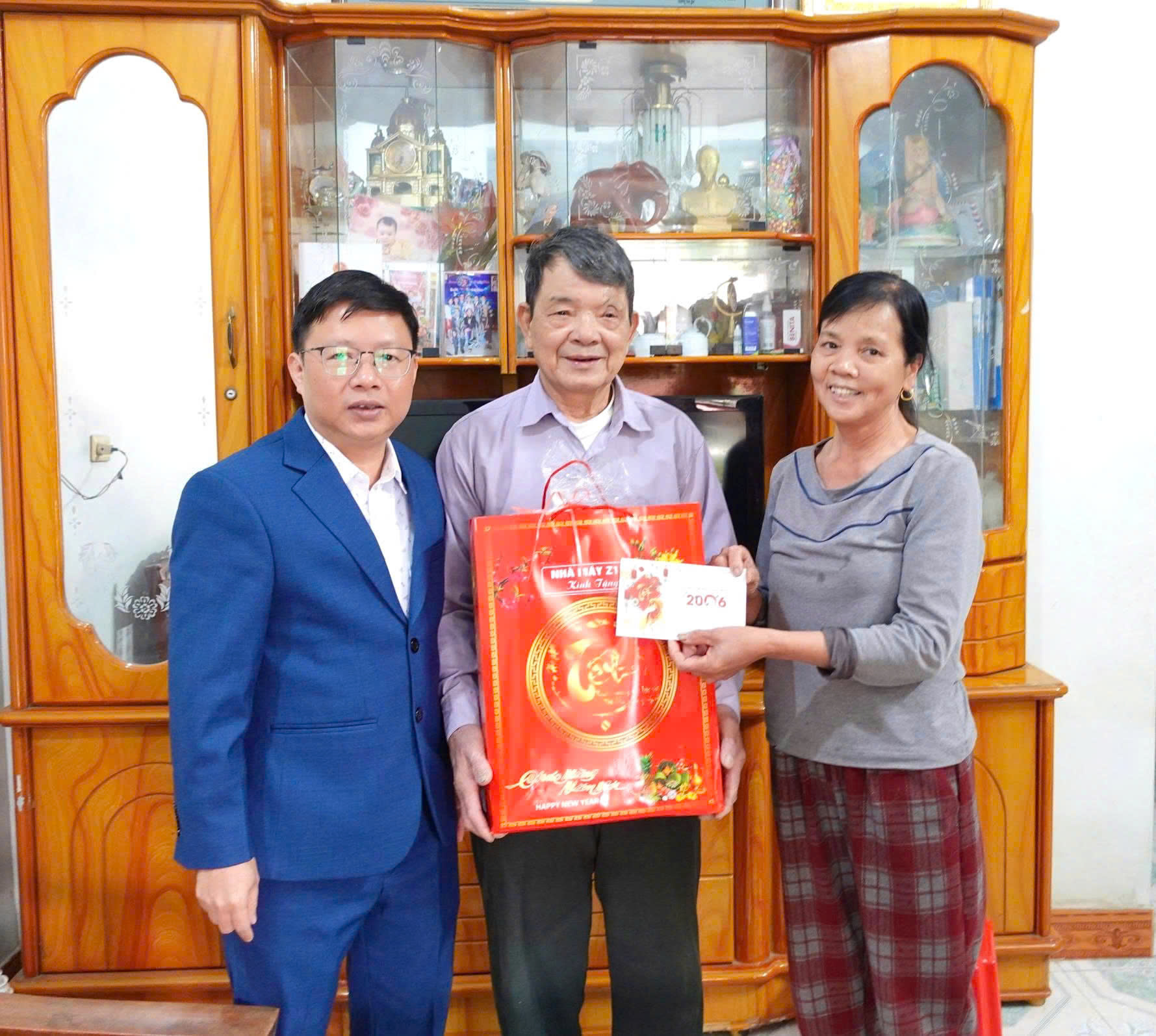 Đồng chí Nguyễn Thế Anh, Phó Bí thư Thường trực Đảng ủy cùng Đoàn đã trực tiếp đến thăm, tặng quà và chúc tết đồng chí Lê Đình Hùng, Thương binh tỷ lệ 26%.