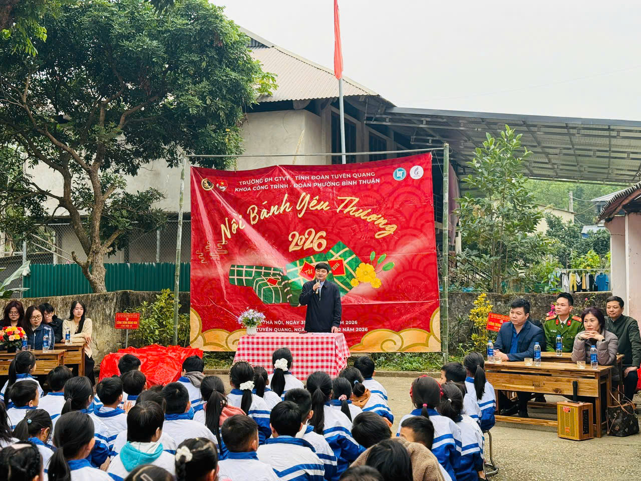 Bằng tất cả tình cảm và tinh thần trách nhiệm của tuổi trẻ, vượt qua quãng đường xa, đoàn công tác đã mang đến cho các em học sinh không chỉ là những phần quà ngày Tết, mà còn là sự sẻ chia chân thành, là niềm tin và hy vọng về một mùa xuân đủ đầy, ấm áp hơn. “Nồi bánh yêu thương” đã thực sự trở thành cầu nối của yêu thương, để những nụ cười trẻ thơ rạng rỡ hơn, và để mùa xuân nơi đây thêm trọn vẹn nghĩa tình.