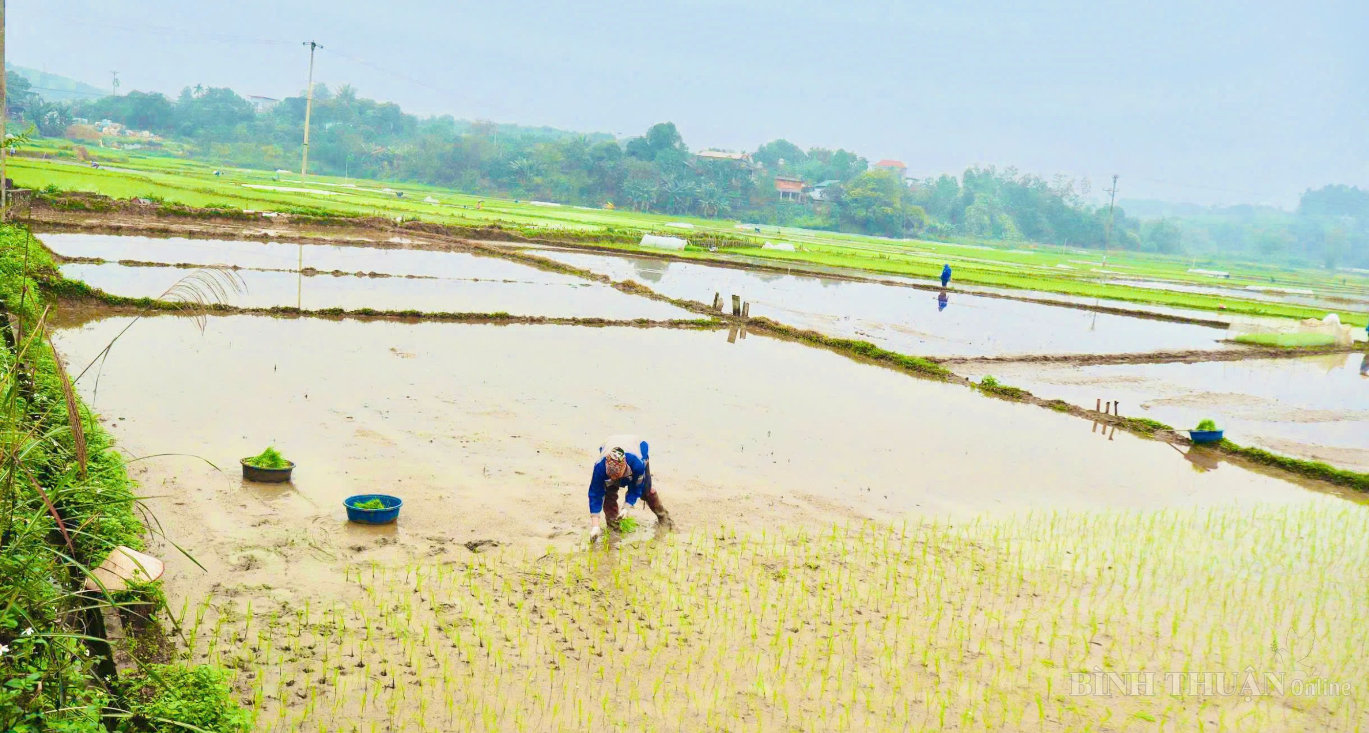 Nông dân phường Bình Thuận xuống đồng cấy lúa vụ xuân.