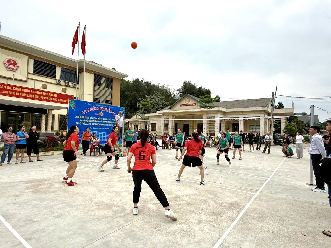 Phát biểu khai mạc, đồng chí Phan Văn Thực, Ủy viên BCH Đảng bộ, Phó Chủ tịch UBND phường, Trưởng Ban Tổ chức giải nhấn mạnh: Giải bóng chuyền hơi là hoạt động thể thao thiết thực nhằm đẩy mạnh phong trào rèn luyện thân thể theo gương Bác Hồ vĩ đại, góp phần nâng cao sức khỏe, đời sống tinh thần cho Nhân dân, đồng thời tăng cường tình đoàn kết, giao lưu giữa các tổ dân phố trên địa bàn.