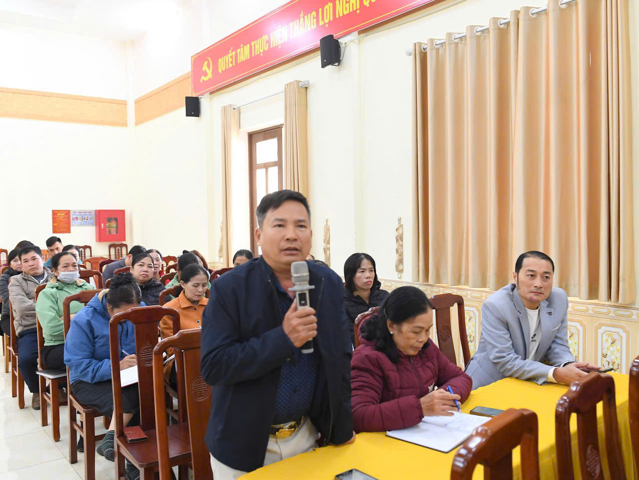 Các cử tri dự hội nghị tập trung lắng nghe ý kiến phát biểu của đại biểu HĐND tỉnh
