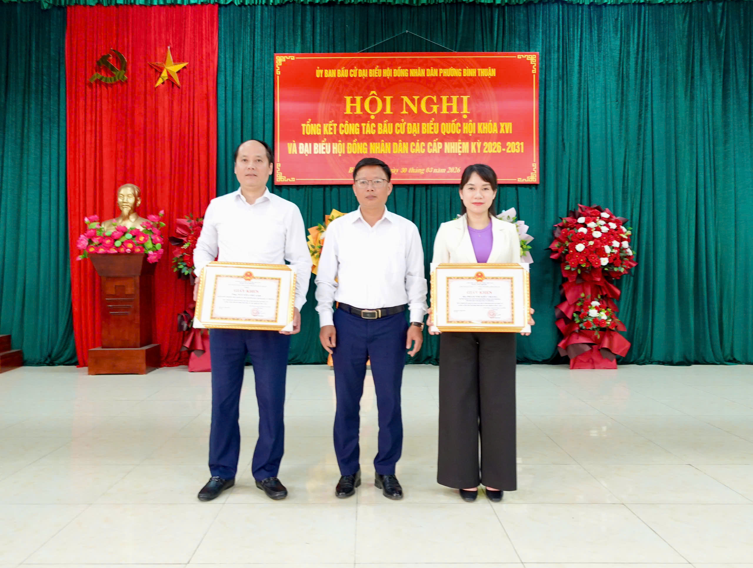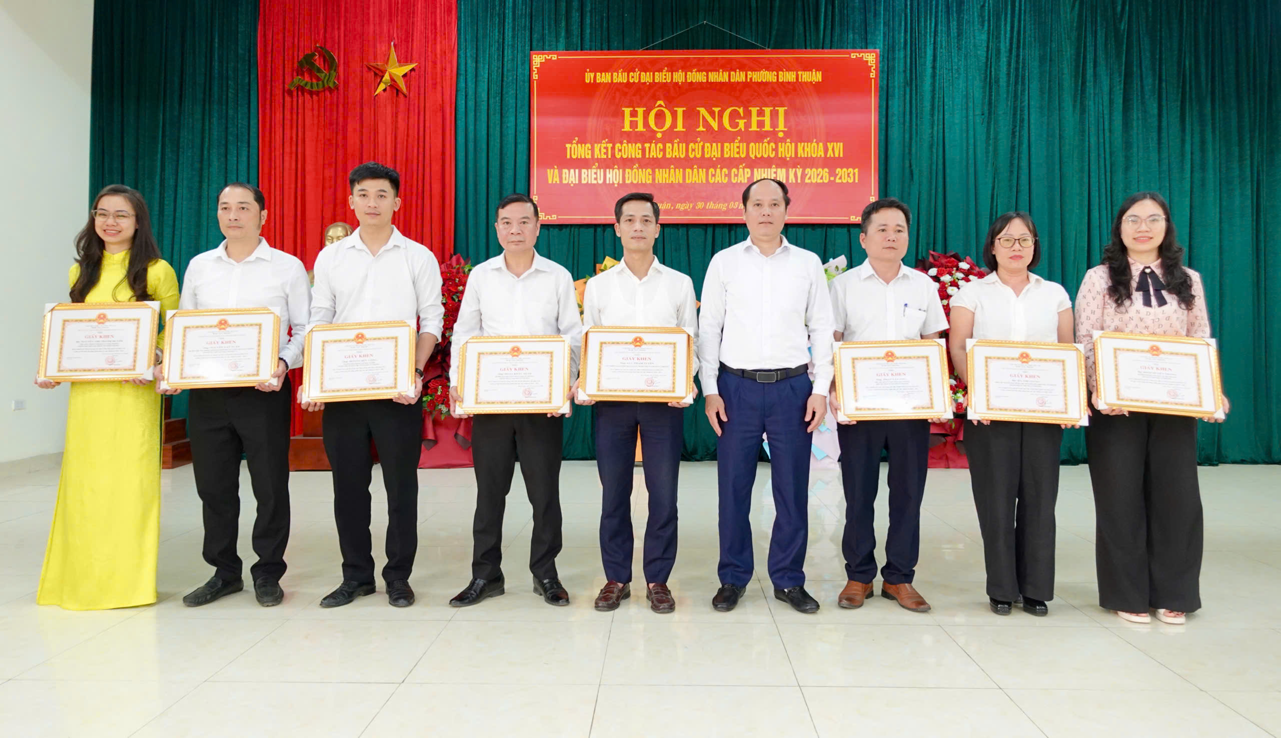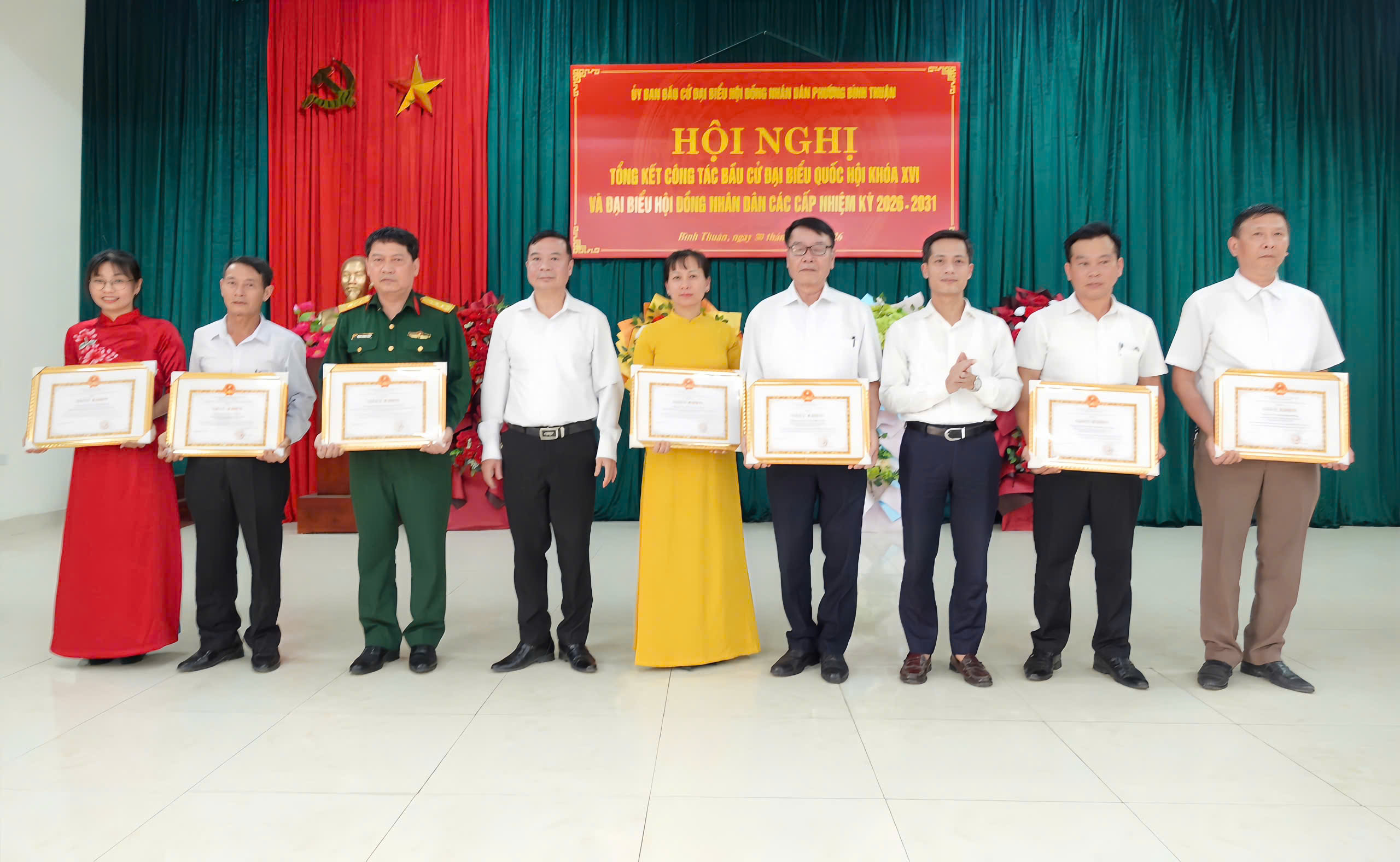 Nhân dịp này, UBND phường đã tặng giấy khen cho 12 tập thể và 38 cá nhân có thành tích xuất sắc trong phong trào thi đua thực hiện tốt công tác bầu cử đại biểu Quốc hội khóa XVI và đại biểu HĐND các cấp nhiệm kỳ 2026 - 2031.