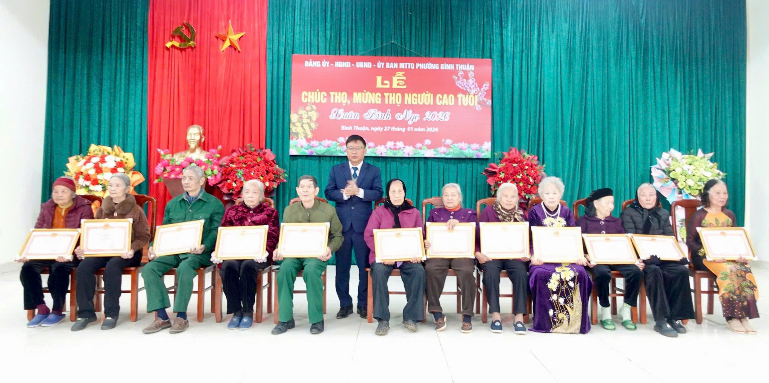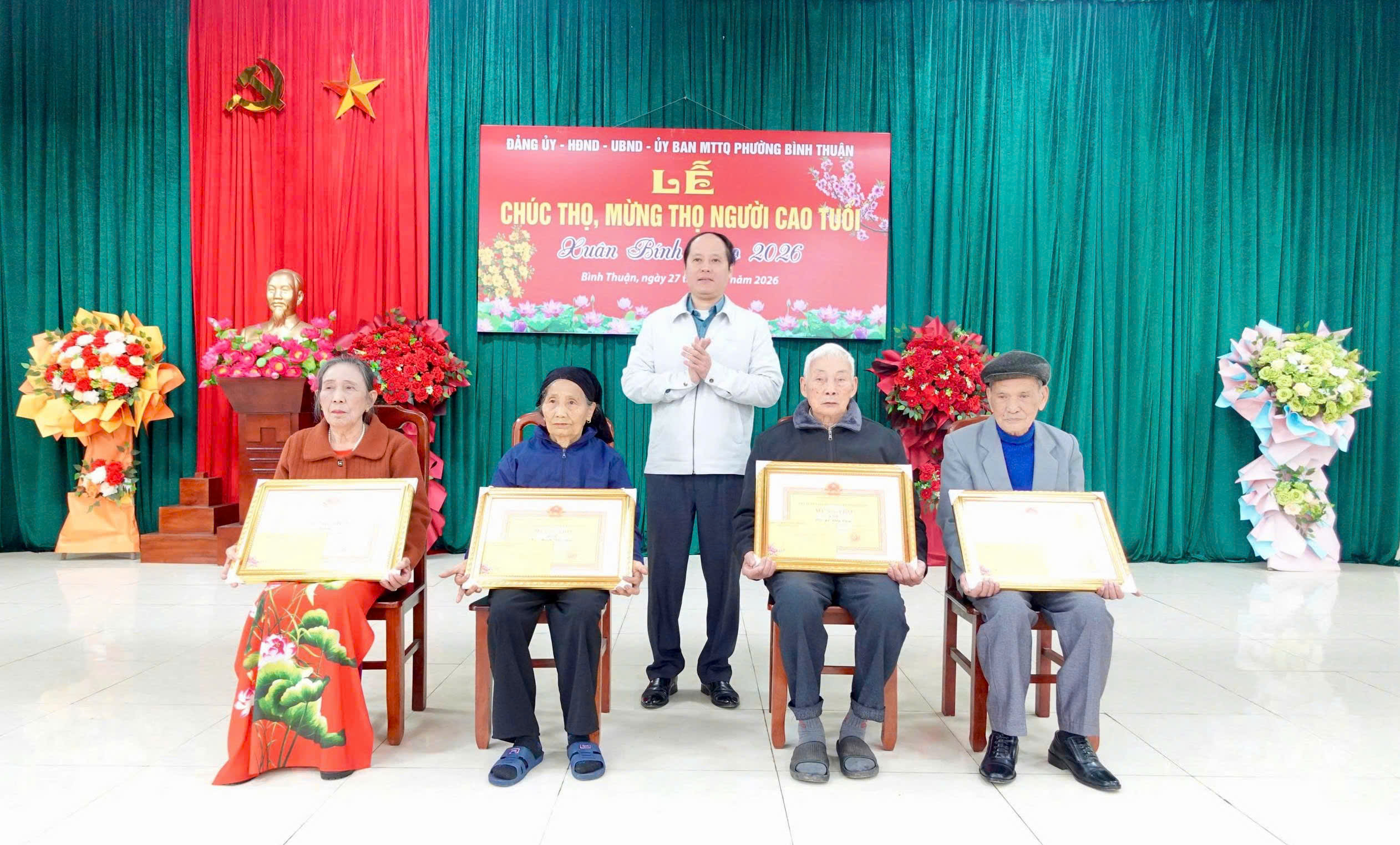 Các đồng chí lãnh đạo phường Bình Thuận dự Lễ chúc thọ, mừng thọ người cao tuổi xuân Bính Ngọ năm 2026.
