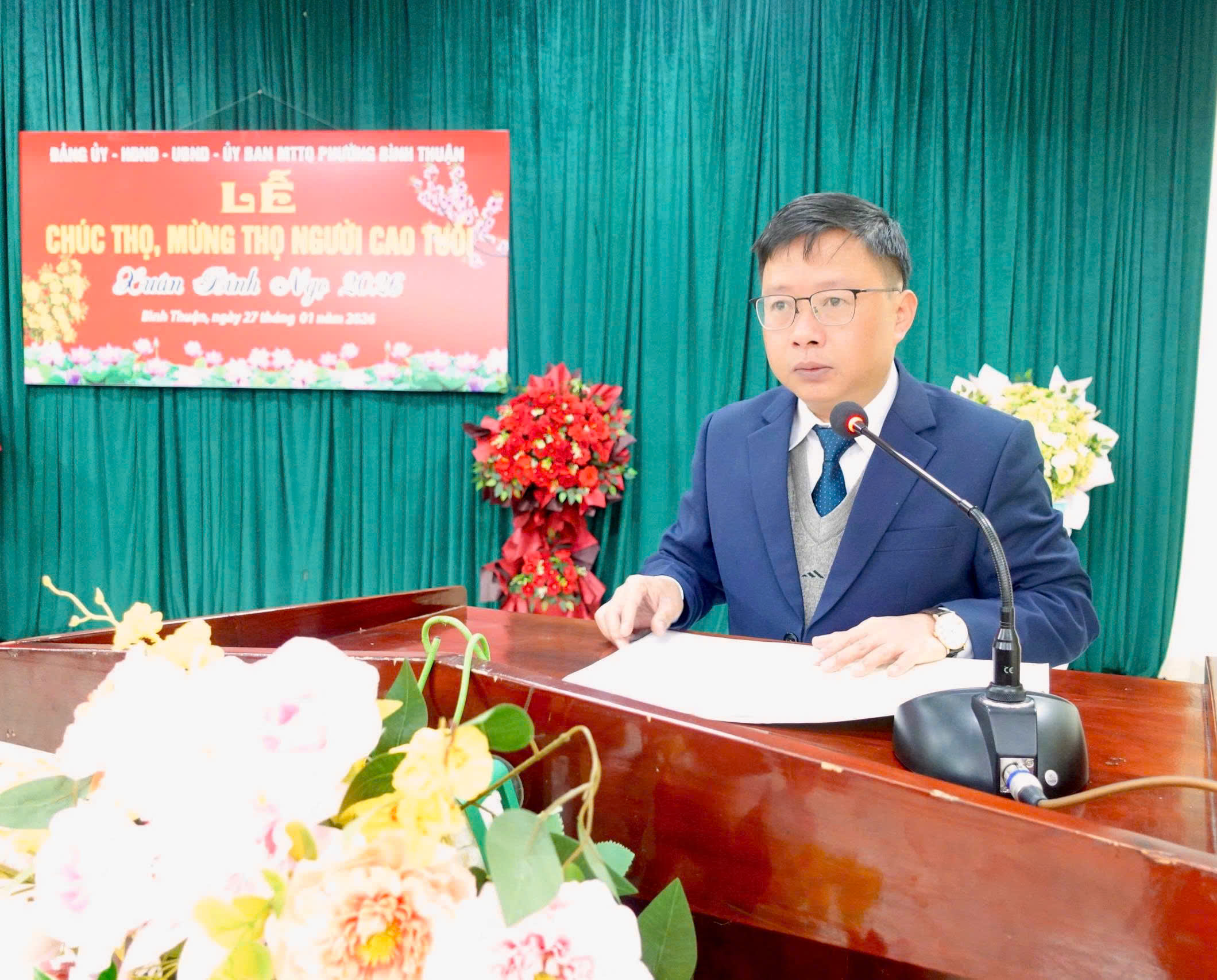Phát biểu tại buổi lễ, đồng chí Chủ tịch UBND phường nhấn mạnh người cao tuổi là vốn quý của gia đình và xã hội, có nhiều đóng góp quan trọng trong sự nghiệp xây dựng và phát triển địa phương. Việc tổ chức Lễ chúc thọ, mừng thọ hằng năm thể hiện truyền thống “kính lão trọng thọ” và sự quan tâm của cấp ủy, chính quyền đối với người cao tuổi. Thời gian tới, phường Bình Thuận sẽ tiếp tục quan tâm chăm lo đời sống vật chất, tinh thần, tạo điều kiện để người cao tuổi phát huy vai trò, uy tín trong cộng đồng.