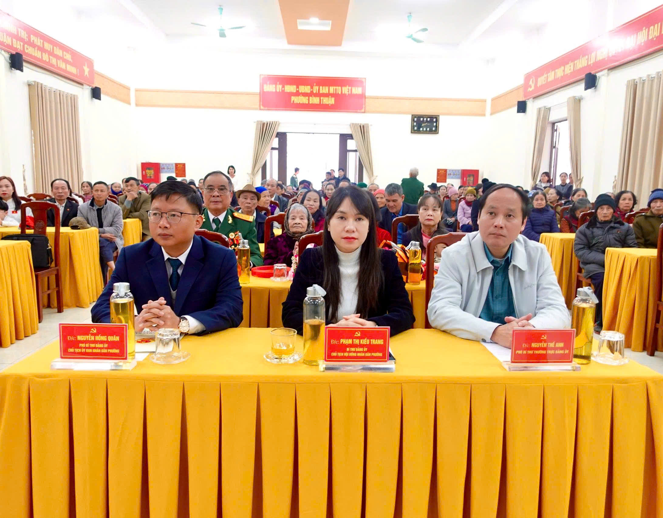 Đến dự buổi lễ có các đồng chí: Phạm Thị Kiều Trang, Bí thư Đảng ủy, Chủ tịch HĐND phường; Nguyễn Thế Anh, Phó Bí thư Thường trực Đảng ủy; Nguyễn Hồng Quân, Phó Bí thư Đảng ủy, Chủ tịch UBND phường. Cùng dự có lãnh đạo HĐND, UBND, Ủy ban MTTQ Việt Nam phường và các tổ chức chính trị – xã hội; các đồng chí trong Ban Thường vụ Đảng ủy; lãnh đạo Công an phường, Ban Chỉ huy Quân sự phường; lãnh đạo các bộ phận chuyên môn thuộc UBND phường; Chủ tịch, Phó Chủ tịch Hội Người cao tuổi phường; Bí thư chi bộ, Tổ trưởng các tổ dân phố cùng người cao tuổi trên địa bàn phường.
