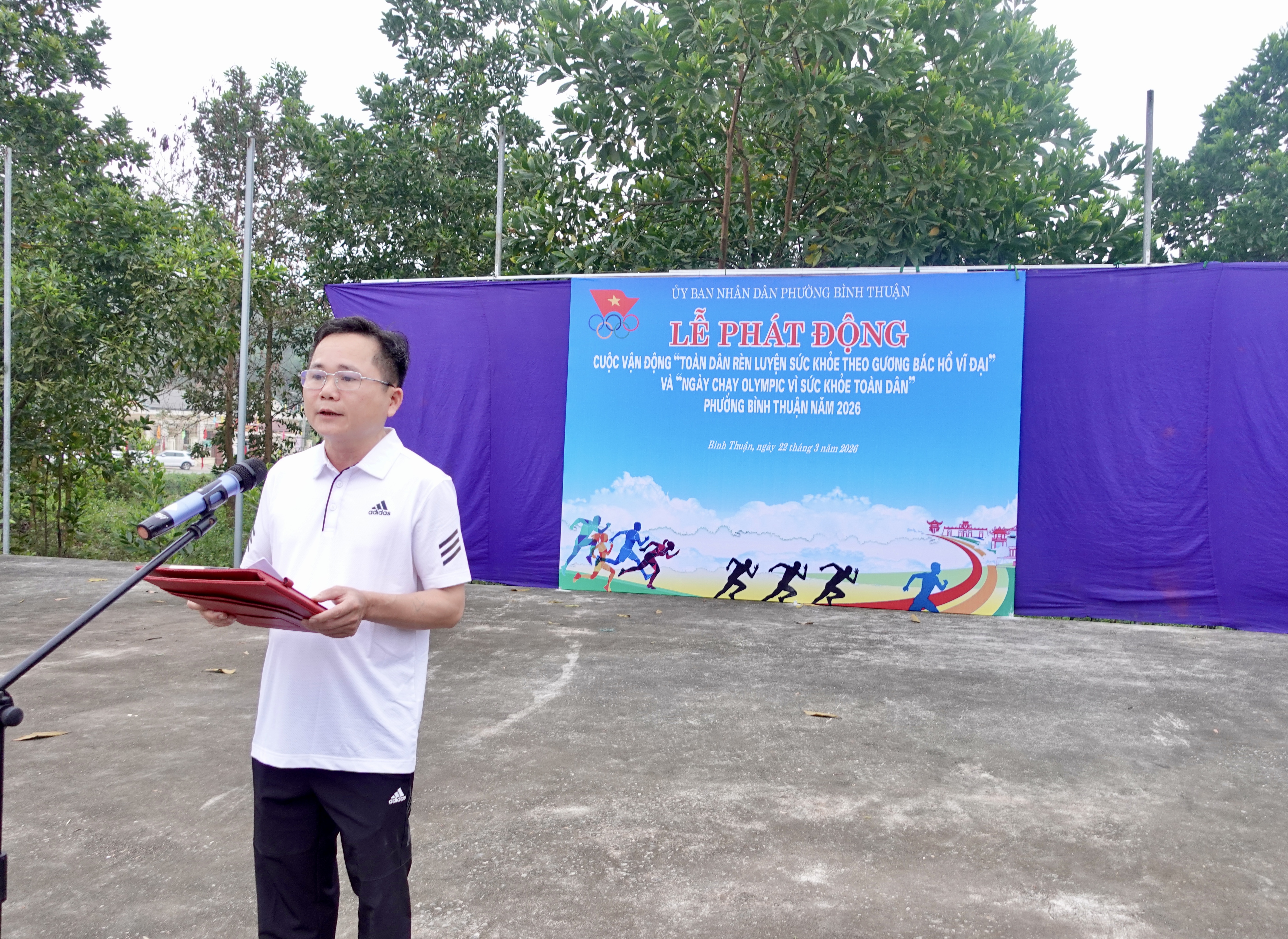 Phát biểu khai mạc buổi lễ, đồng chí Phan Văn Thực, Ủy viên Ban Chấp hành Đảng bộ phường, Phó Chủ tịch UBND phường, Giám đốc Trung tâm Phục vụ hành chính công đã đọc “Lời kêu gọi toàn dân tập thể dục” của Chủ tịch Hồ Chí Minh; đồng thời nhấn mạnh vai trò, ý nghĩa của việc rèn luyện thể dục thể thao trong việc nâng cao sức khỏe, thể chất và đời sống tinh thần cho Nhân dân. Qua đó kêu gọi toàn thể cán bộ, đảng viên và Nhân dân tích cực hưởng ứng phong trào “Toàn dân rèn luyện thân thể theo gương Bác Hồ vĩ đại”, góp phần xây dựng lối sống lành mạnh, nâng cao chất lượng cuộc sống.
