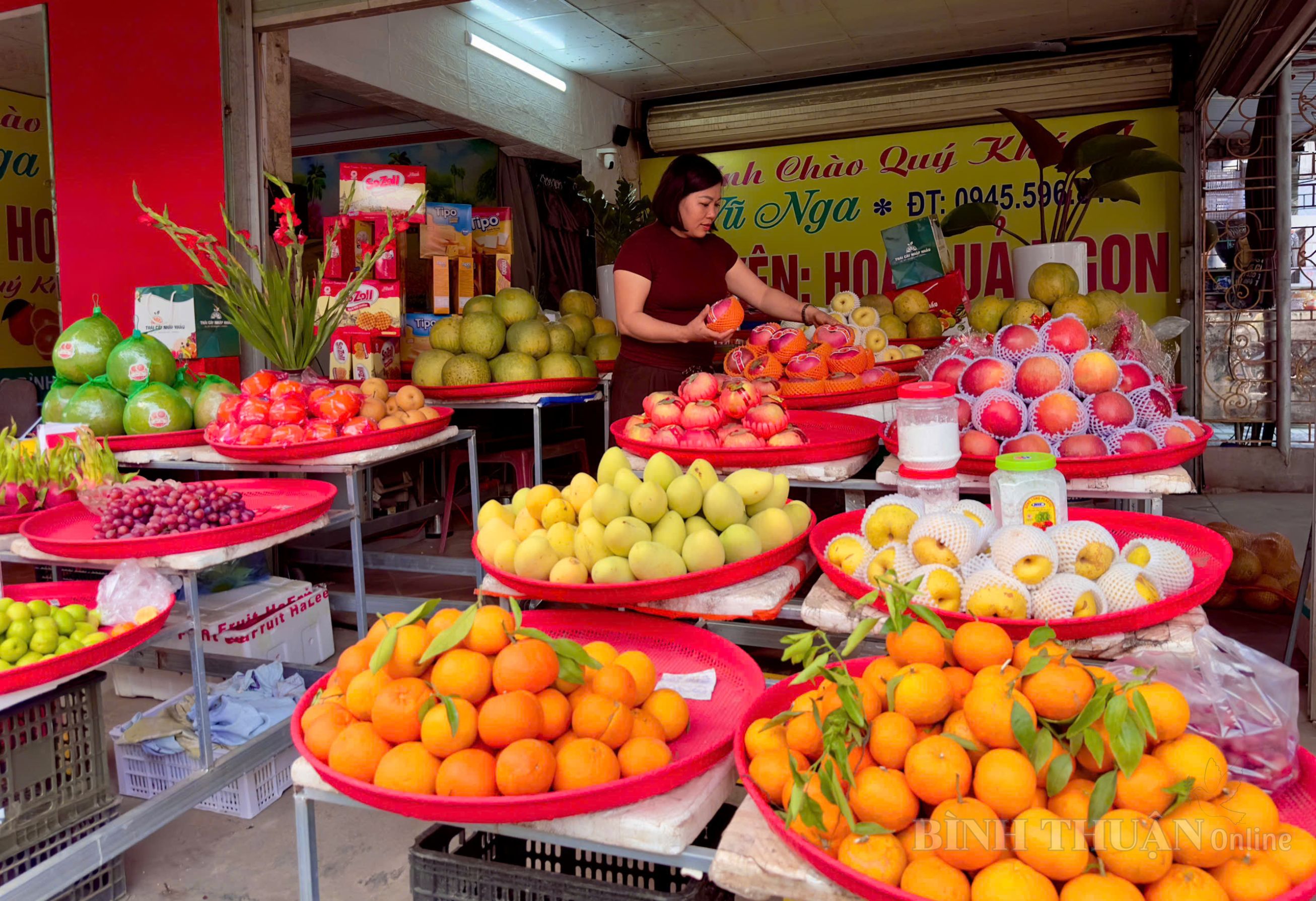Những ngày cuối năm Dương lịch, khi không khí Tết đang lan tỏa khắp các khu dân cư, ngõ phố……, thì chợ Tân Bình, phường Bình Thuận cũng trở nên nhộn nhịp hơn thường lệ. Trong đó, các hộ kinh doanh hoa, quả là một trong những điểm đến quen thuộc của người dân mỗi dịp lễ, tết. Theo ghi nhận, để phục vụ nhu cầu mua sắm tăng cao trong dịp Tết Dương lịch và Tết Nguyên đán, các hộ kinh doanh tại chợ Tân Bình đã chủ động chuẩn bị nguồn hàng phong phú, đa dạng về chủng loại. Các loại hoa tươi như lay ơn, cúc, đào, quất cùng nhiều loại hoa trang trí ngày Tết được nhập về với số lượng lớn, đảm bảo tươi mới, phù hợp với nhu cầu trưng bày, thờ cúng của mỗi gia đình. Bên cạnh đó, các mặt hàng quả trái cây cũng được bổ sung dồi dào, từ những loại trái cây quen thuộc như chuối, bưởi, cam, quýt, táo, lê… đến các loại quả chất lượng cao phục vụ mâm ngũ quả ngày Tết. Nhiều tiểu thương cho biết, so với ngày thường, lượng khách đến mua sắm trong thời điểm này tăng rõ rệt, đặc biệt vào buổi sáng và những ngày cận Tết.
