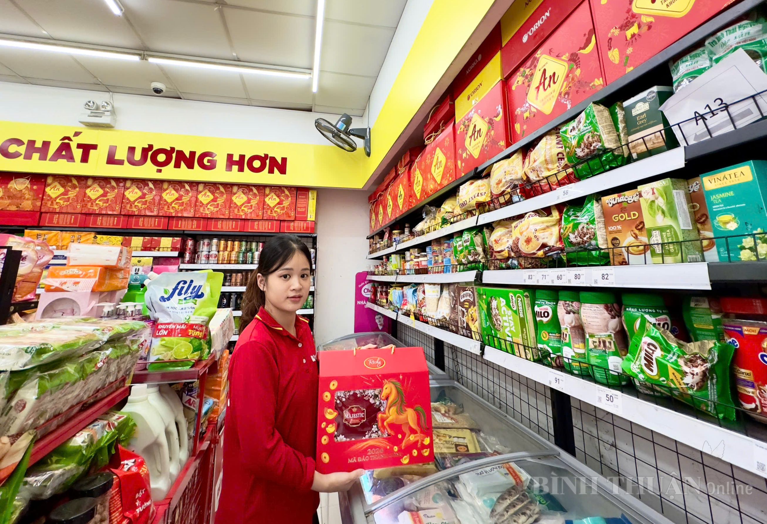 Trong không khí rộn ràng những ngày cuối năm, khi sắc xuân đang dần hiện hữu trên từng tuyến phố, tại Siêu thị Winmart, tổ dân phố 13, phường Bình Thuận, công tác chuẩn bị hàng hóa phục vụ Nhân dân đón Tết đã và đang được triển khai khẩn trương, chu đáo. Chia sẻ với chúng tôi, chị Trần Thu Lan, nhân viên bán hàng của siêu thị cho biết: “Để đáp ứng nhu cầu mua sắm tăng cao trong dịp Tết Dương lịch cũng như Tết Nguyên đán Bính Ngọ 2026, cửa hàng đã chủ động nhập thêm nhiều mặt hàng thiết yếu. Trong đó, tập trung chủ yếu vào các nhóm sản phẩm được người tiêu dùng lựa chọn nhiều như nước giải khát, bánh kẹo, mứt Tết, thực phẩm đóng gói và các mặt hàng tiêu dùng nhanh phục vụ sinh hoạt gia đình”.