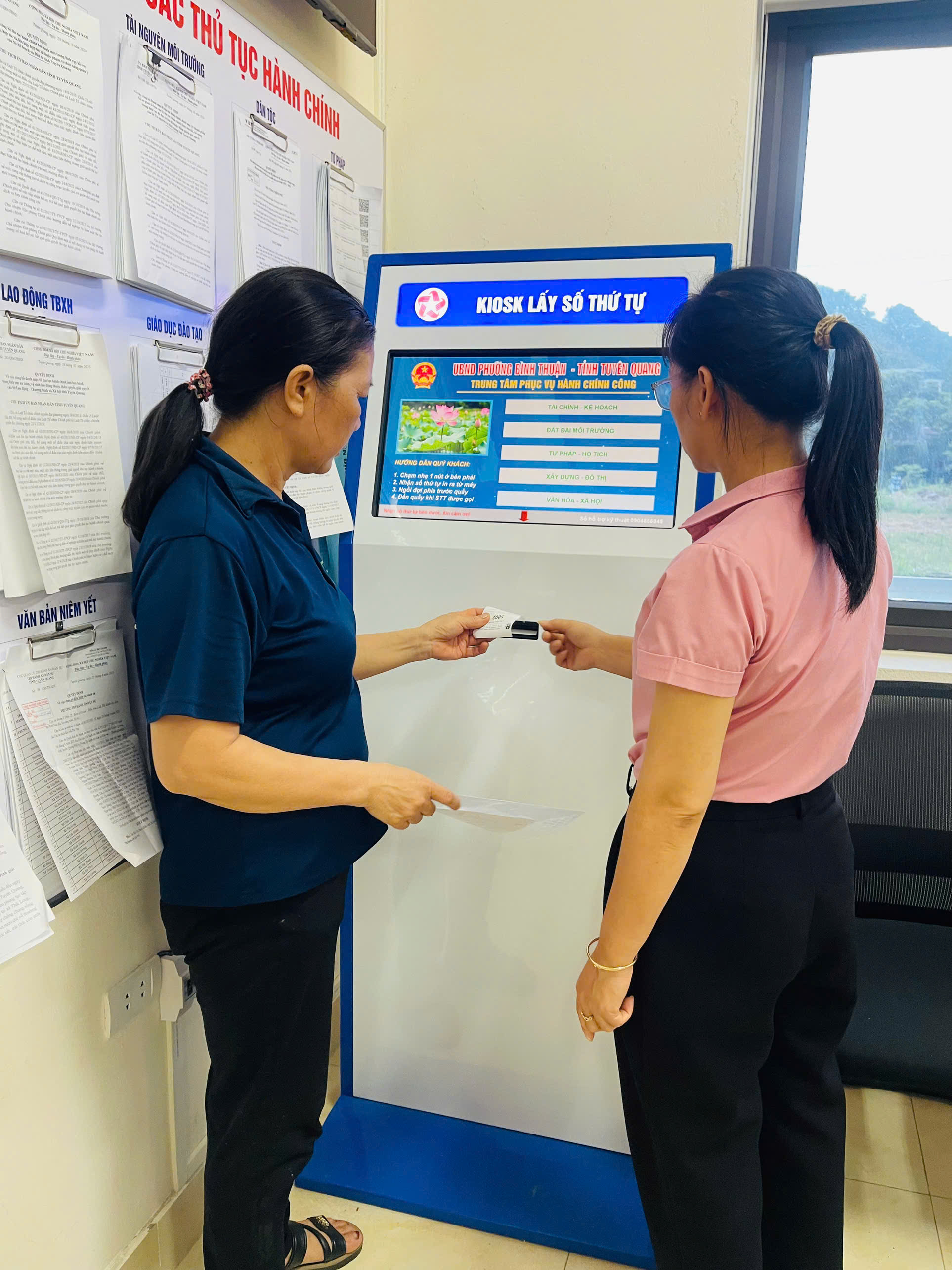 Trung tâm được trang bị hệ thống cơ sở vật chất, trang thiết bị hiện đại: máy lấy số thứ tự tự động, màn hình hiển thị, phần mềm quản lý hồ sơ… giúp quá trình tiếp nhận, xử lý và trả kết quả diễn ra minh bạch, khoa học, nhanh gọn. Người dân dễ dàng theo dõi tiến độ giải quyết hồ sơ, hạn chế tối đa tình trạng chờ đợi.